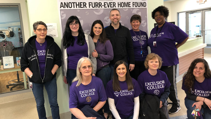 I reached out to Alicia Jacobs, who leads Excelsior’s community engagement efforts, back in 2016 to tell my story of why I volunteer and to spread the word about the annual brain tumor walk. Little did I know that would open a whole new world for me and volunteering. After that conversation, Alicia asked me to join the Community Engagement Group and as they say, the rest is history. Since then, I went from an active member of the group to now serving for two years as co-chair of the committee. I have volunteered for many organizations in this time and helped with the planning and implementation for others in the Excelsior College community to do so as well.